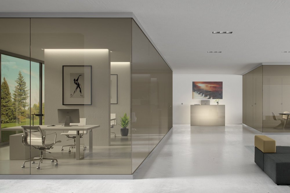 Dělicí příčky z bezpečnostního skla Stratobel Sandy Brown