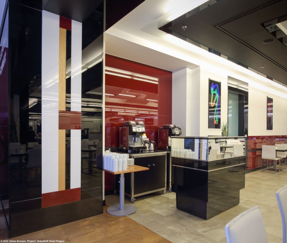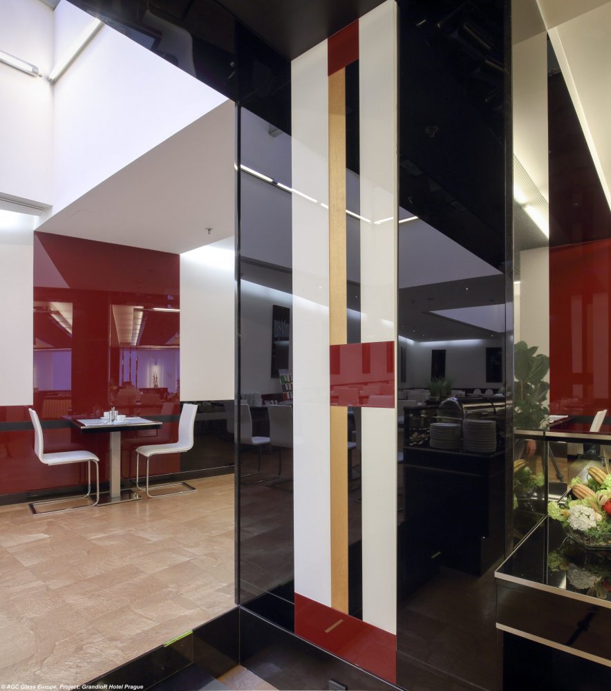 Lakované sklo Lacobel Black Classic, White Pure a Red Dark