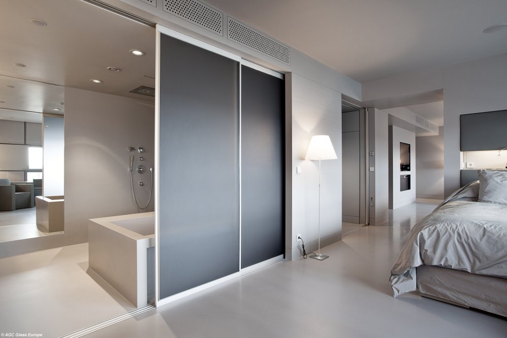 Tepelně tvrzené lakované sklo Lacobel White Pure a Planibel Clearvision