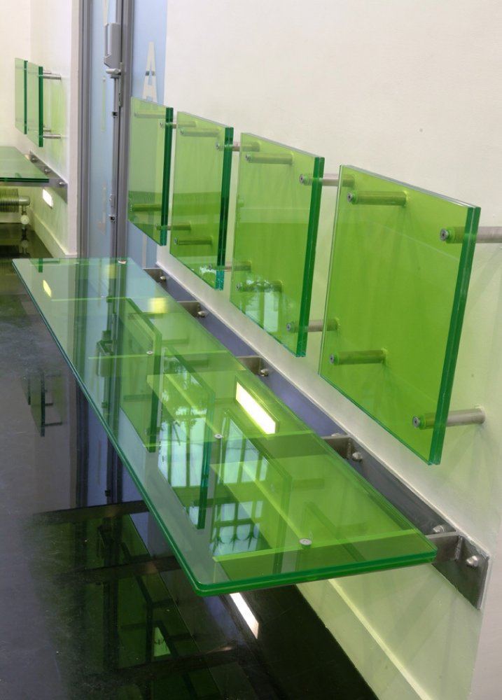 Skleněné sedačky z vrstveného bezpečnostního skla Stratobel
