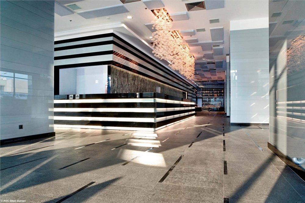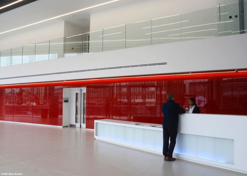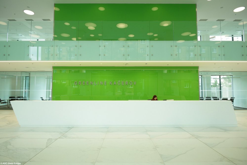 Skleněný obklad Lacobel Green Luminous, zábradlí ze skla Artlite