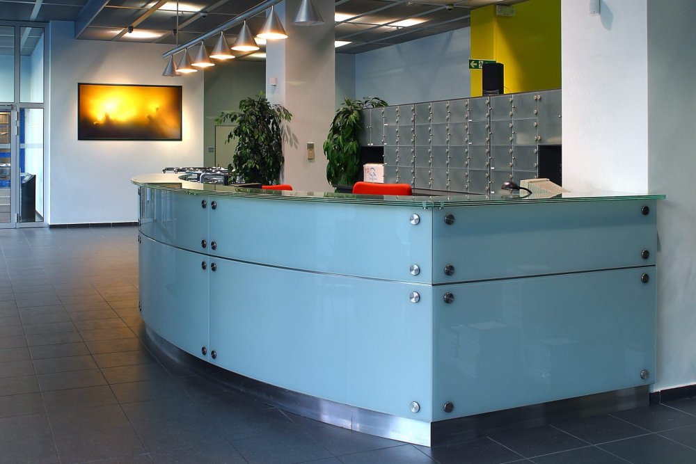 Skleněný obklad Lacobel Green Luminous, zábradlí ze skla Artlite