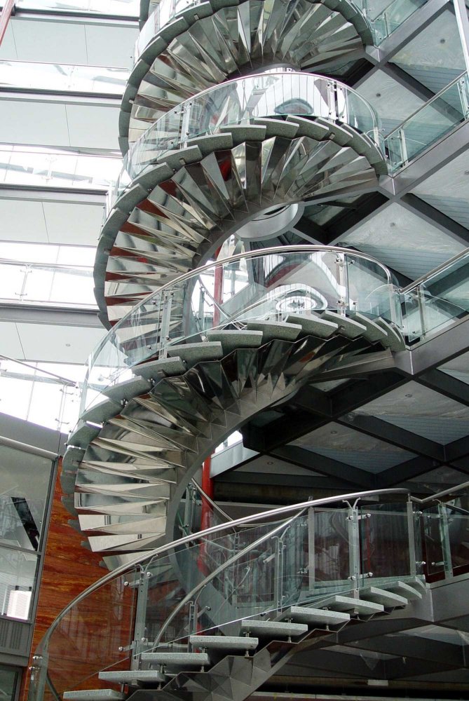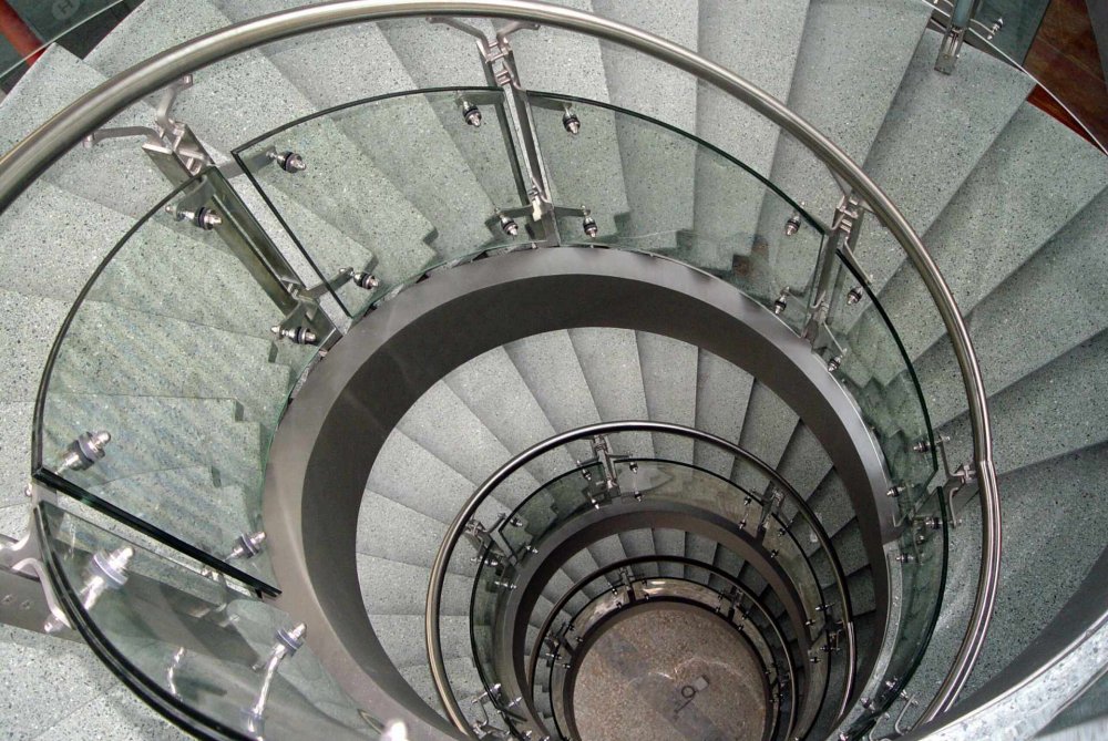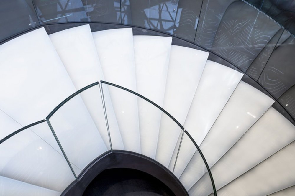 Zábradlí z ohýbaného vrstveného bezpečnostního skla Stratobel 01