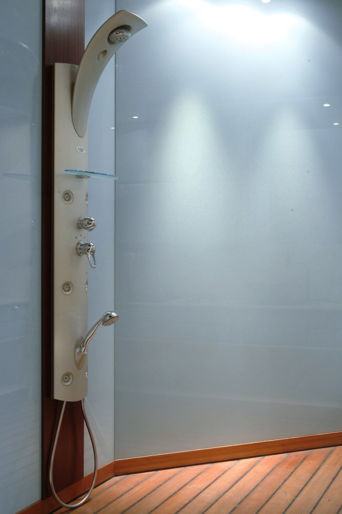 Sprchový obklad z lakovaného skla Lacobel Blue Pastel