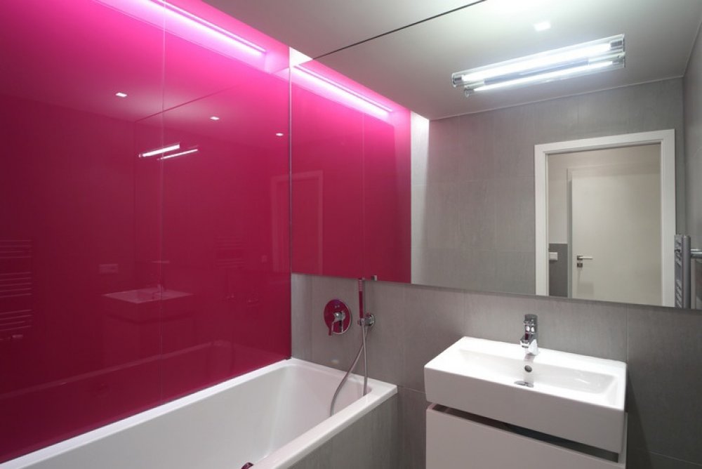 Skleněný obklad v koupelně Lacobel Fuchsia