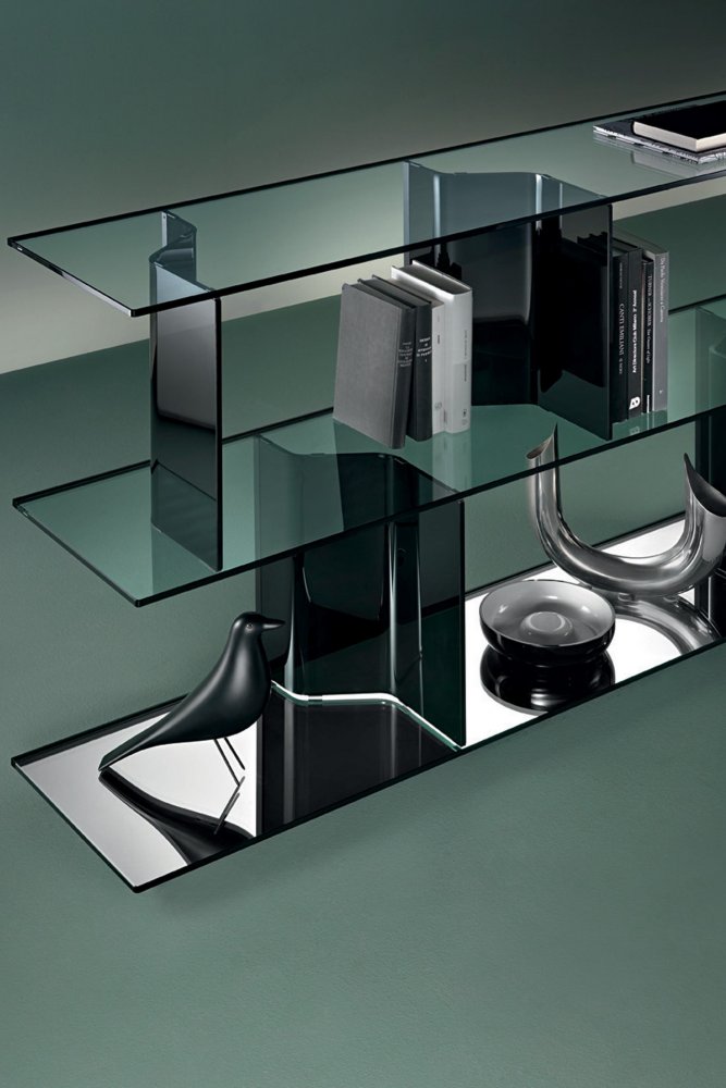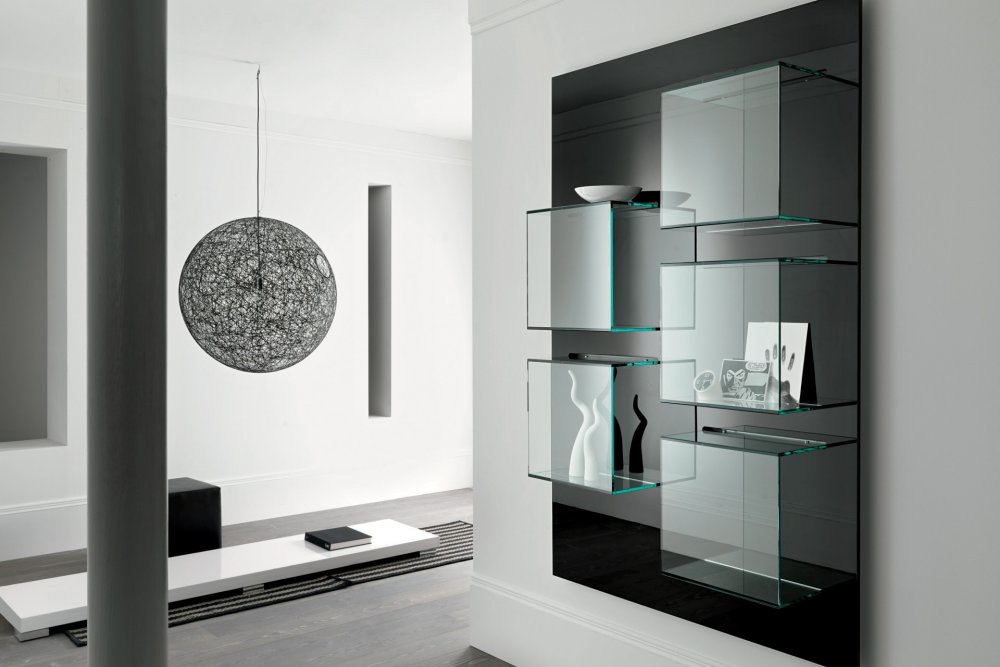 Skleněný nábytek Tonelli z lakovaného skla Lacobel Black Classic a extra čirého skla Planibel Clearvision