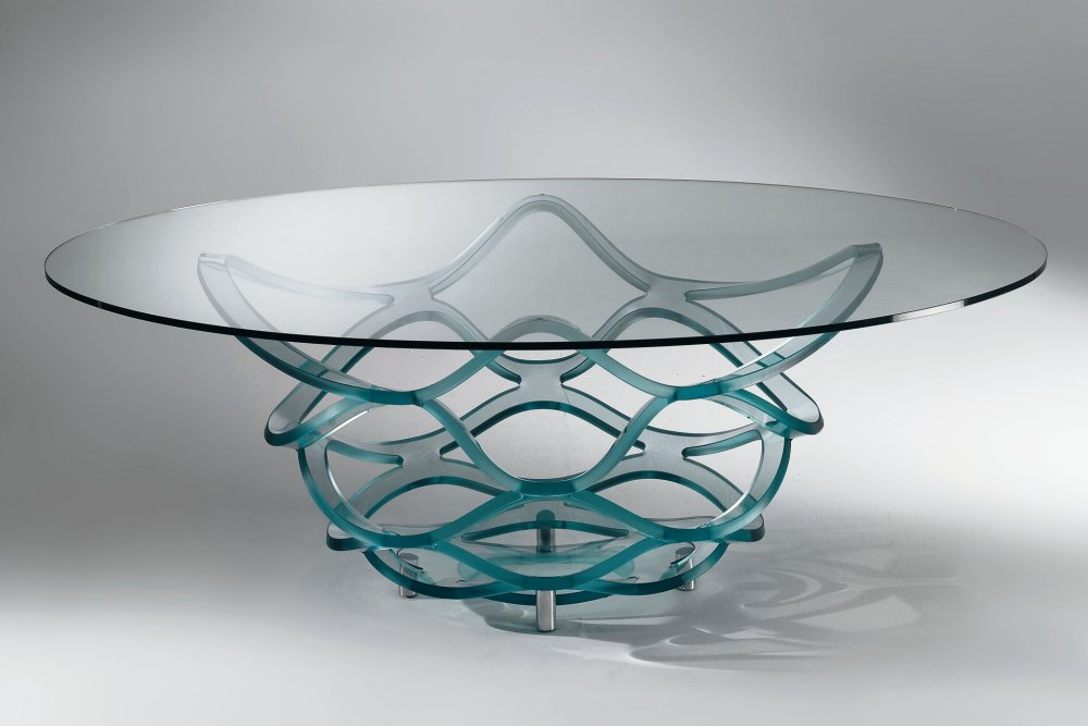 Stůl Ray z designového skla Planibel Linea Azzurra