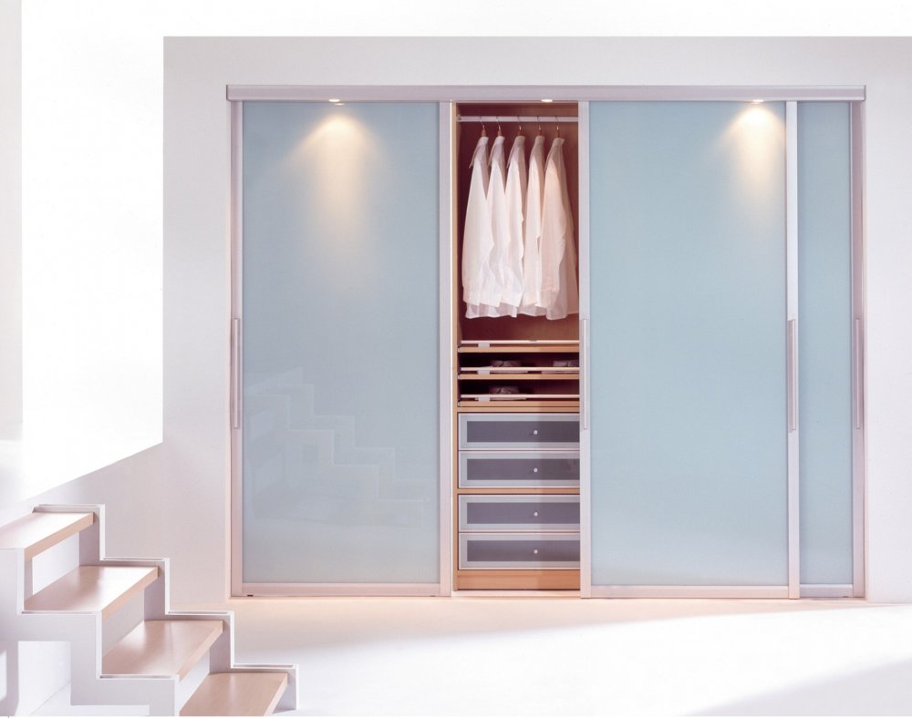Vestavěná skříň se sklem Lacobel Blue Pastel