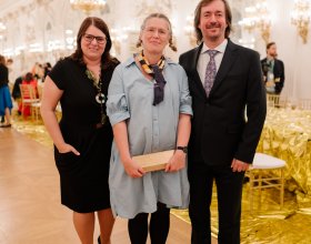 Cenu AGC Glass Europe za udržitelný design si odnesla hvězda současného holandského designu Ineke Hans, a to za zcela jedinečný projekt první zálohované židle REX. Vítězka rovněž získává výstavní prostor na Designbloku 2024 zdarma a pozvánku k prohlídce některého z našich výrobních závodů.